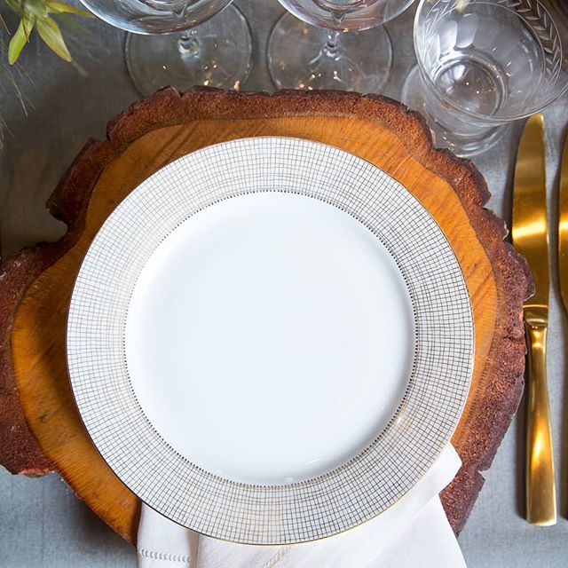 Our Calgary China with gold weave border adds a chic and whimsical touch to this unique charger setting., created_time