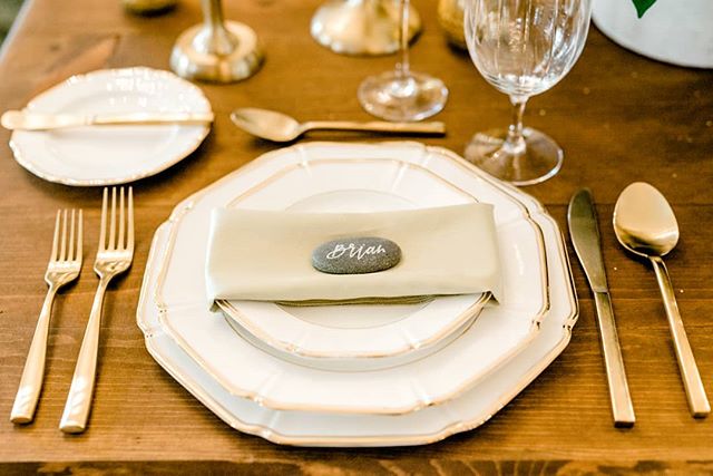 A gorgeous setup using our Carrington Bone Gold china, Oro flatware, and Optique glassware! . . . Rentals: @brighteventrentals Planner:...