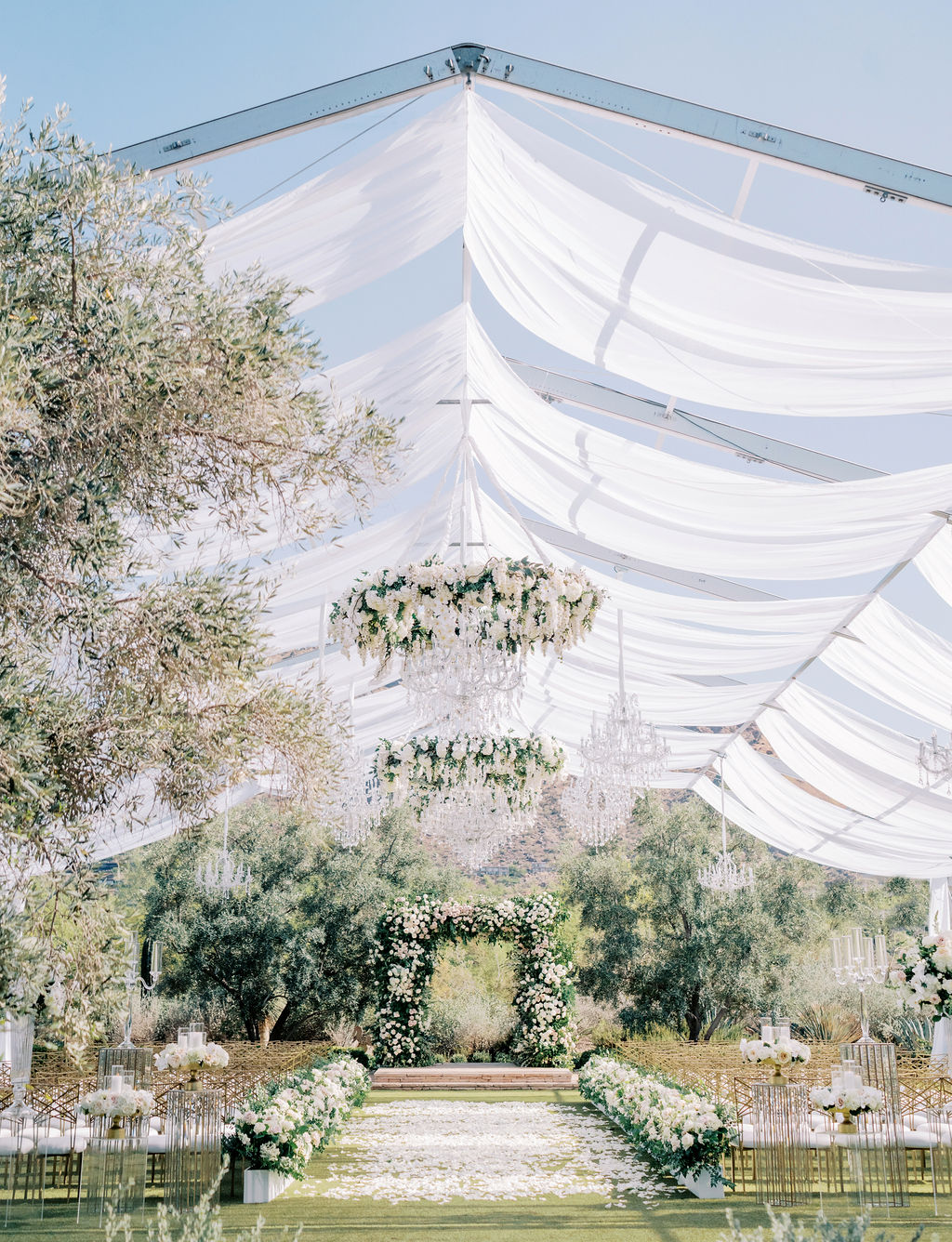 Draping can be added to a variety of tents to create a soft and elegant design. Whether it's full coverage or partial, our team of designers can help make your vision come to life. Colors, textures, and lighting can be fully customized.